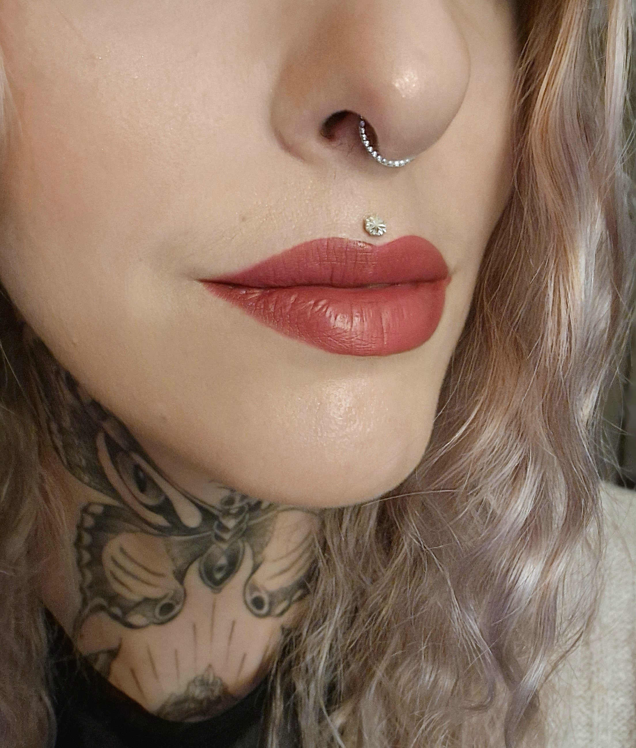 Septum percé début mars, cicatrisation nickel. Très professionnelle, adorable, et le plus important AU TOP DE L'HYGIÈNE !! Gipsyy répond très facilement et rapidement aux messages que ce soit pour prise de rdv ou conseil pré ou avant perçage 👌🏼 Ce qui est sûre c'est que j'y retournerai