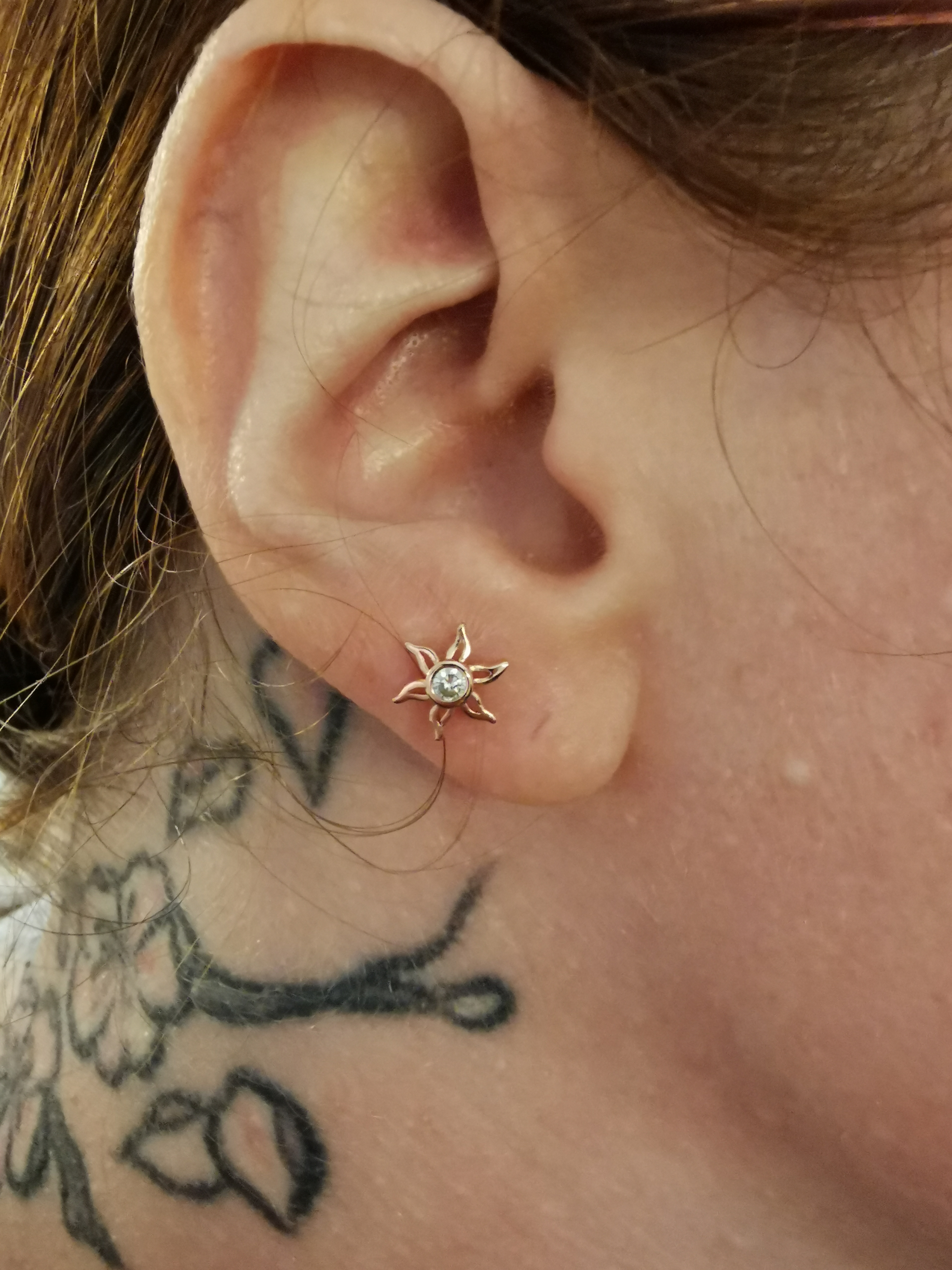 Celine est de super bon conseil! Elle a réussi à rattraper des percages raté fait en bijouterie auparavant. Et mon hélix est trop top! Merci encore Celine et à bientôt pour un autre percing!