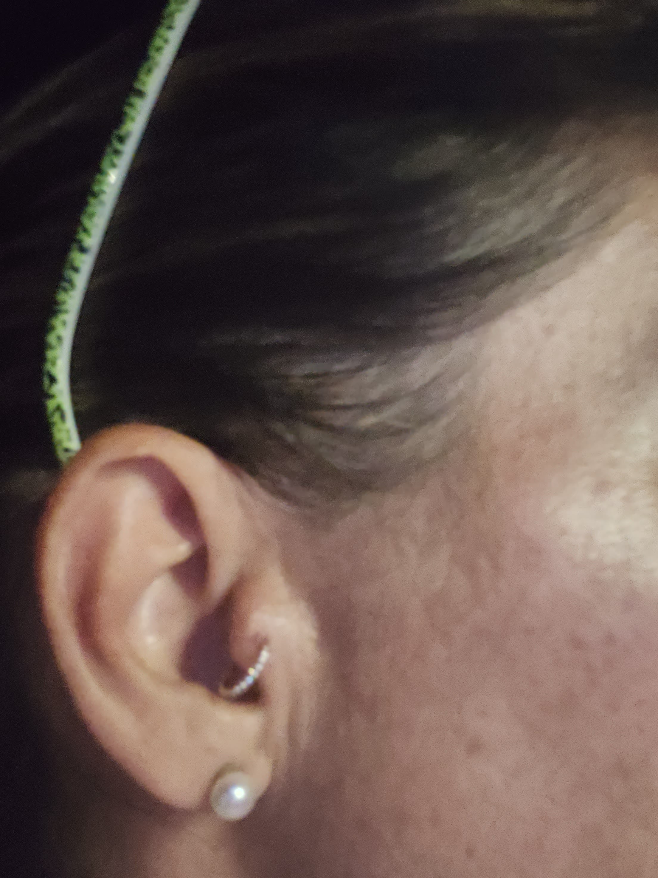Un coup de tête au salon du tatouage.. Et hop un tragus de Manu.. Nickel... Très pro.. Zéro infection.. J adore mon Piercing 😊